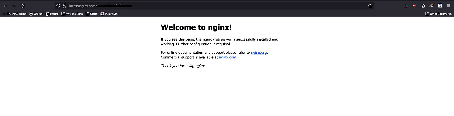 My first goal was to use XCP-NG to get a Kubernetes cluster running at home. It can only help to know k8s, so I dove right in. K3S, a lighterweight, edge compute version of k8s is the solution I went with. Though k3s is lightweight, don’t mistake it for fake Kubernetes. Many companies run Kubernetes on edge using k3s. Chick-fil-A runs a three-node k3s cluster in all their stores, this podcast explains more of their use case and architecture. I will not bore you with the configuration of ingress controllers, master and worker nodes, etc. but after much deliberation, I have a two-node cluster (which I will expand once I get more compute) and nginx running as a test. I plan to deploy real applications that I write onto the cluster with time (I’ll get to that later).